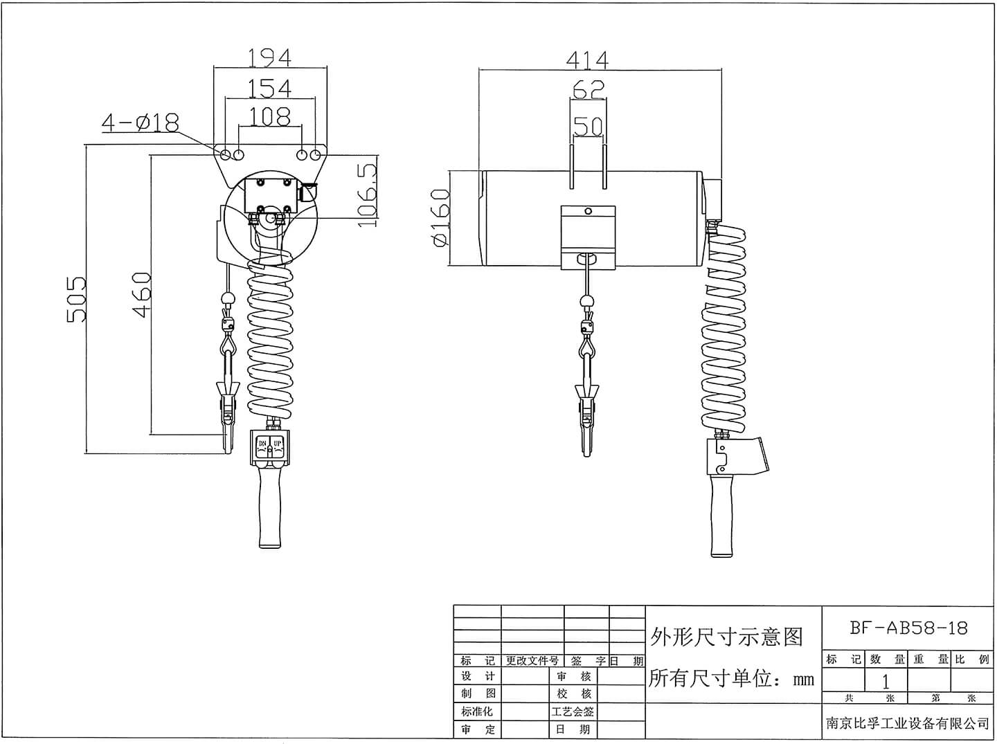 氣動平衡吊標準額定工作氣壓是0.7Mpa(100psi)。