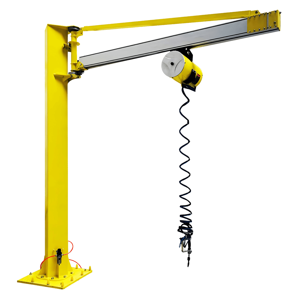 懸臂吊是屬于輕型工作強度起重機,由立柱、回轉機械臂、回轉驅動裝置及提升機組成。具有自重輕、跨度大、手動運行在懸臂上作左右直線,旋轉運行,利用氣動平衡吊或氣動葫蘆起吊工件或重物。
