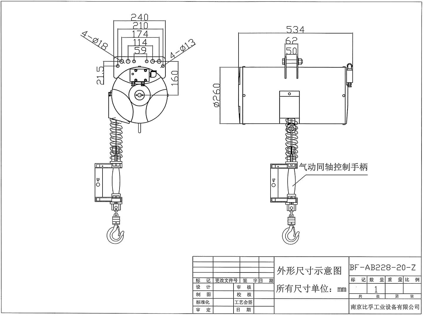 氣動平衡吊標準額定工作氣壓是0.7Mpa(100psi)。