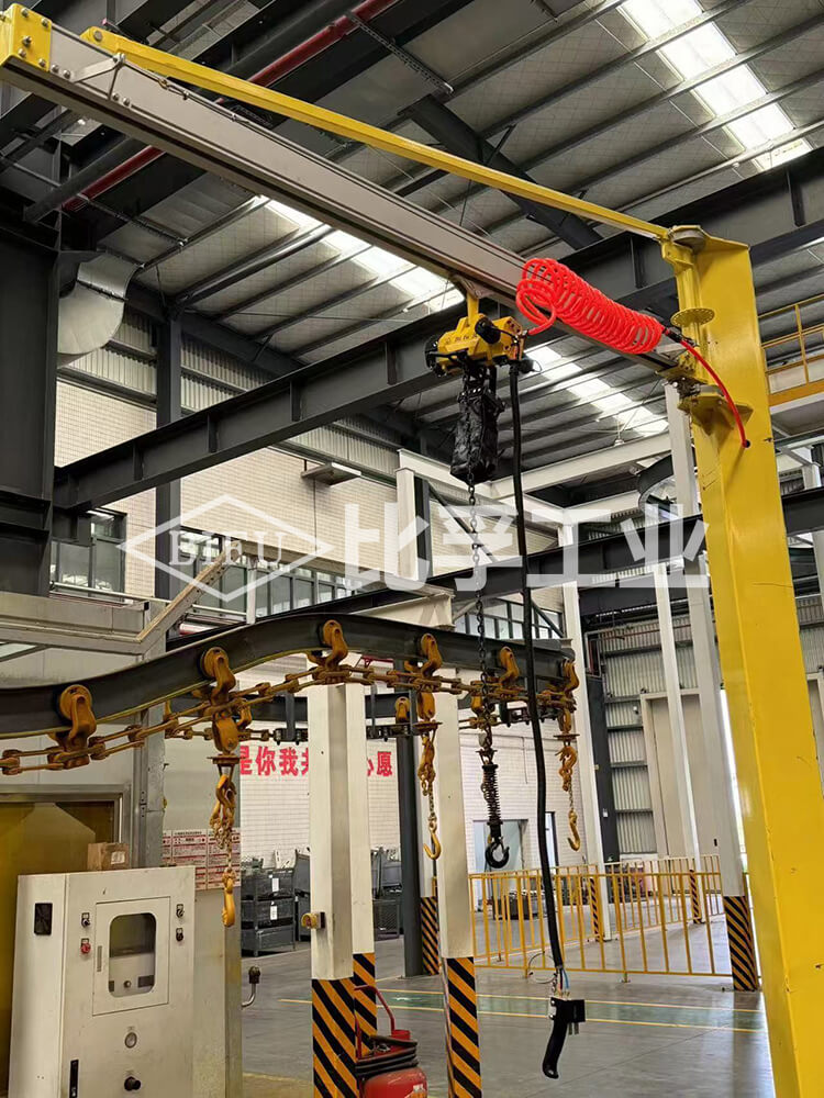 氣動葫蘆配自立式懸臂吊上下料應(yīng)用案例。
