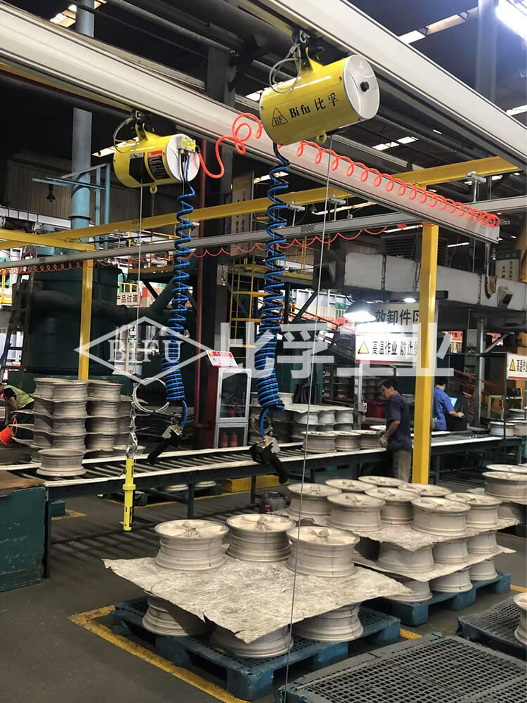 氣動平衡吊配鋼結構雙主梁鋼結構鋁合金軌道應用案例。